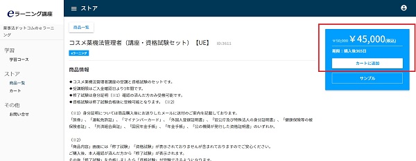 ご優待割引URLhttps://tlp.edulio.com/ydc/cart/detail/3611をクリックすると下記の画面が表示されます。右側の青の長方形をご覧いただくと5000円割引の価格表示になっています。
